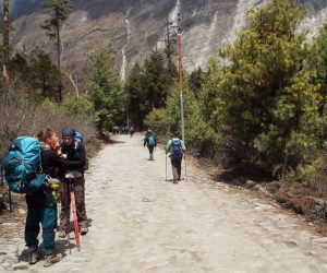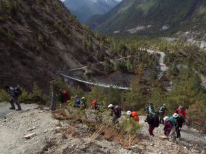 मनाङको निस्यङ गाउँपालिका–१ पिसाङबाट आइतबार घ्यरुतर्फ जाँदै गरेका पर्यटक ।