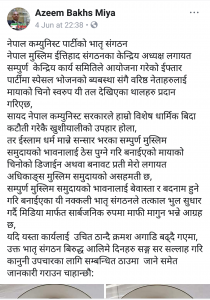 तत्कालिन नेकपा (एमाले) को भातृ संगठन नेपाल मुस्लिम इत्तेहाद संघठनको इफ्तार कार्यक्रम विवादमा घेरिएको छ।