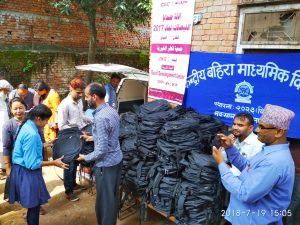 कक्षा एक देखि दश सम्म अध्ययनरत रहेका प्रत्येक बिद्यार्थीहरुलाई एक थान झोला ,छ थान कापी र दश थान कलम दिएको र नर्सरी देखि यू. के. जी. सम्मको प्रत्येक बिद्यार्थीलाई १ थान बैग सहित ४ कापी र ६ कलम प्रदान गरेको च्यारिटीका कार्यक्रम ब्यवस्थापक इर्शाद शेखले बताए ।