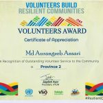 को सहकार्यमा प्रदेशको नमूना स्वयंसेवक छनोट भएकोमा औरंगजेब अंसारी खुशी वयक्त गरे।
