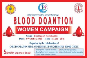 केही पनि कुरा दान गर्नु आफैमा पुन्यको काम हो त्यो भन्दा पनि ठुलो कुरा हो रगत दान गर्नु र अरु कसैका जीवन बचाउनु हो । हाम्रो देश नेपालमा धेरै जसो बिरामीहरु रगत को अभाव मा मृत्युबरण गर्न पुग्द्छ्न । विशेष गरि अप्रेसन कक्ष, क्यान्सर बिरामी, सुत्केरी गराउदा, या कुनै सडक दुर्घटना मा परेर घाइते भएका बिरामीहरुको लागि रगत जरुरत पर्दछ । १८ बर्ष देखि ६० बर्ष सम्मको स्वास्थ महिलाले ४-४ महिनाको फरकमा रक्तदान गर्न सक्छन् । तपाईंको यो कार्यले एक जनाको जिन्दगी बाँच्नेछ भने तपाईं आफै पनि विभिन्न रोगहरु बाट बच्नु हुनेछ । रगत हाम्रो शरीरमा बग्ने तरल पदार्थ हो जस्मा रहेका रातो रक्तकोस १२० दिन, सेतो रक्तकोस २-१५ दिन र प्लेट्लेट्स ७-१४ दिनमा मरेर जान्छ र नयाँ केसिकाहरु बन्दै जान्छ्न । रक्तदान गर्दा रगतमा रहेका बिकार पदार्थहरु बाहिर निस्किने छन । नयाँ र स्वास्थ रगतहरु उत्पादन गर्नेछन । महिलाको हकमा रक्तदान गर्नको लागि रगतको हेमोग्लोबिन कम्तिमा १२.५ र महिनाबारी भयको कम्तिमा १ हप्ता भयको राम्रो मानिन्छ । त्यसैले महिला ससक्तिकरणको लागि केयर फाउन्डेसनद्वारा संचालन गर्न लागेको बृहत् महिला रक्तदान कार्यक्रममा सहभागी हुनको लागि तमाम दिदी बहिनीहरुलाई अनुरोध गर्दछु । महिला शसक्तिकरण र समाजिक कार्यमा महिला सहभागिता गराइ, महिलाको आत्मसम्मानका लागि उक्त कार्यक्रम आयोजना गर्न लागिएको हो । कार्यक्रममा महिला दिदी बहिनीहरुको उल्लेख्य सहभागिताको लागि हार्दिक अनुरोध छ । कोरोना महामारीका बेला नेपालका धेरै अस्पतालमा रगतको अभाव भएको समाचारहरु बाहिरी रहेको हुँदा यस संकटको घडीमा रक्तदान गरेर आफू र अरुको जिन्दगी बचाउन हाम्रो योगदान अतुलनीय रहनेछ ।