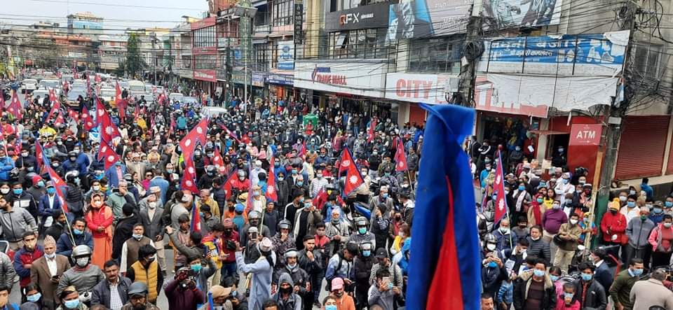 पोखरा, मंसिर १० देशमा अब राजतन्त्रको विकल्प छैन् भन्दै बुधबार पोखरामा राजाबादीहरुले प्रदर्शन गरेका छन् । राष्ट्रिय झण्डासहित उपस्थित उनीहरुले पोखराका विभिन्न ठाँउमा मोटरसाइकल र्याली गरेका हुन् । पोखराको अमरसिंहचोकबाट शुरु भएको र्याली पृथ्वीचोक, मुस्ताङचोक, लेकसाइड, जिरोकिलोमिटर , सभागृहचोक, न्यूरोडहुँदै मानव अधिकार चोकमा पुगेर कोण सभामा परिणत भएको थियो...बाँकी अंश →