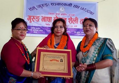 वालिङ, २ पुस,, लोपोन्मुख अवस्थामा रहेको गुरुङ (तमु) भाषाको संरक्षणका लागि स्याङ्जाको वालिङमा गुरुङ भाषाको प्रशिक्षण प्रदान गरिएको छ । तमु ह्युल छोजधीँ गुरुङ राष्ट्रिय परिषद् स्याङ्जाले जिल्लाका ६२ जनालाई प्रशिक्षण प्रदान गरिएको परिषद्का स्याङ्जा महासचिव टीकराज गुरुङले बताउनुभयो । “प्यो म्हस्याँ, छ्या म्हमु, छ्या म्हस्याँ ल्हु म्हमु, ल्हु म्हस्याँ...बाँकी अंश →
