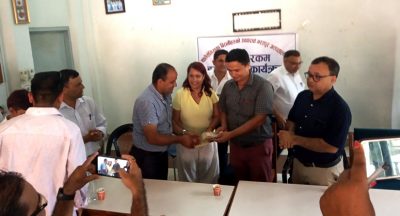 काभे्रपलाञ्चोक, ७ साउन ,, नेपाल पत्रकार महासङ्घ काभ्रेपलाञ्चोक शाखाले पत्रकार कल्याण कोष स्थापना गरेको छ । विपद्मा परेका पत्रकारलाई सहयोग गर्ने उद्दश्यले रु पाँच लाखको कल्याण कोष स्थापना गरिएको शाखा अध्यक्ष मोतीराम तिमल्सिनाले बताउनुभयो । उहाँका अनुसार १० वर्षे मुद्धति खातामा राखिएको उक्त रकमको ब्याजबाट विपद्मा परेका पत्रकारलाई सहयोग गरिनेछ...बाँकी अंश →