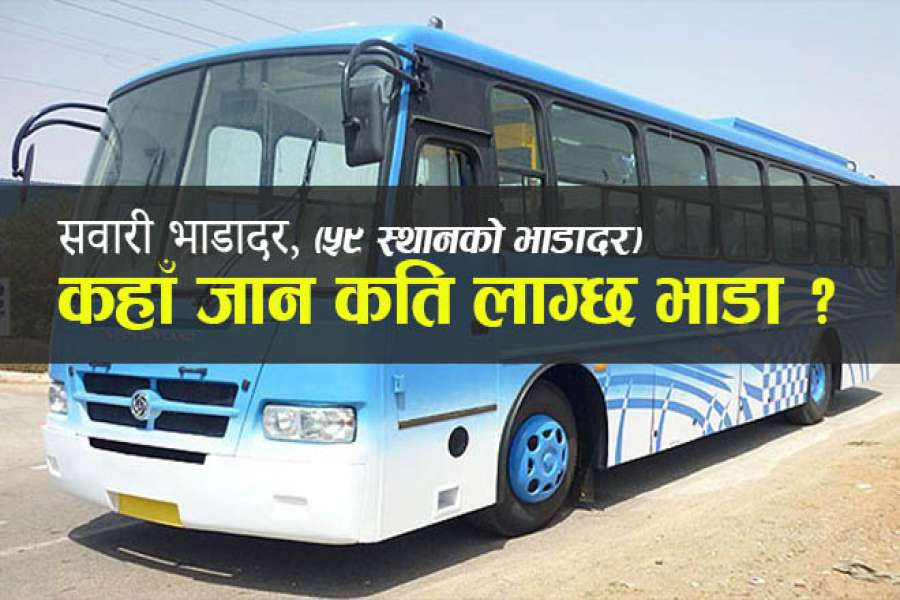 काठमाडौँ, ८असोज ,, सरकारले सार्वजनिक सवारी साधनको नयाँ भाडा दर कायम गरेको छ । यातायात व्यवस्था विभागले शहरी क्षेत्र र लामो दूरीमा चल्ने सवारी साधनको नयाँ भाडादर सार्वजनिक गरेको हो । शनिबार सरकार र यातायात व्यवसायीबीच भएको सहमतिअनुसार नयाँ भाडादर कायम गरिएको हो । विभागको नयाँ व्यवस्थाअनुसार काठमाडौँ उपत्यकामा न्यूनतम...बाँकी अंश →
