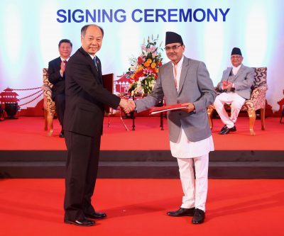 काठमाडौँ, २६ असोज ,, चीनका राष्ट्रपति सी चीनफिङ र प्रधानमन्त्री केपी शर्मा ओलीको उपस्थितिमा नेपाल र चीनबीच आज बीस समझदारीपत्र र ‘लेटर अफ एक्सचेन्ज’ (आदानप्रदानपत्र)का दस्तावेजमा हस्ताक्षर भएको छ । नेपाल सरकार र चीन सरकारका उच्च अधिकारीले ती दस्तावेजमा आजै हस्ताक्षर गरी आदान प्रदान गर्नुभयो । हस्ताक्षर भई आदानप्रदान भएका...बाँकी अंश →