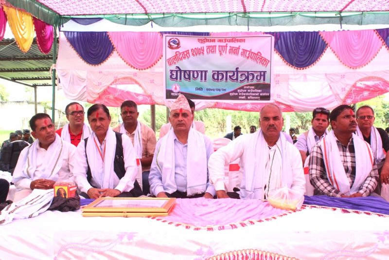 कपिलवस्तु भदौ २९ । कपिलवस्तुको शुद्धोधन गाउँपालिकालाई जिल्लाकै पहिलो पूर्ण भर्ना गाँउपालिका घोषणा गरिएको छ । १० स्थानीय तह रहेको जिल्लामा शुद्धोधन गाउँपालिका पहिलो पूर्ण भर्ना तथा साक्षर गाउँपालिका घोषणा भएको हो । शुक्रबार बाल दिवसको अवसर पारेर एक समारोहका बीच गाउँपालिका अध्यक्ष निसार अहमद खाँले पूर्ण भर्ना गाउँपालिका...बाँकी अंश →