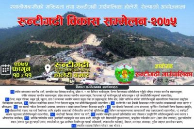 रोल्पा, १२ फागुन ,, रोल्पा रुन्टीगढी विकास सम्मेलनले १० बँुदे घोषणापत्र जारी गरेको छ । समृद्धिका लागि साझेदारी भन्ने नारासहित फागुन १० र ११ गते रोल्पाको होलेरीमा सम्पन्न विकास सम्मेलनले होलेरी र त्यस आसपासका क्षेत्रको समेत विकासमा जोड दिने गरी घोषणापत्र जारी गरेको हो । स्थानीय सरकार गठनपछि पहिलो पटक...बाँकी अंश →