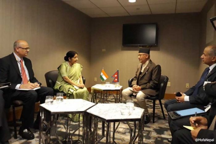 न्यूयोर्क, ११ असोज ,, प्रधानमन्त्री केपी शर्मा ओलीसँग भारतीय विदेशमन्त्री सुषमा स्वराजले शिष्टचार भेट गर्नुभएको छ । सो अवसरमा दुई मुलुकबीच मित्रता तथा त्यसलाई थप सबल बनाउने विषयमा छलफल भएको प्रधानमन्त्री ओलीले जानकारी दिनुभयो । उक्त अवसरमा परराष्ट्रमन्त्री प्रदीपकुमार ज्ञवाली, प्रधानमन्त्रीका प्रमुख सल्लाहकार विष्णु रिमाल, संयुक्त राज्य अमेरिकाका लागि...बाँकी अंश →