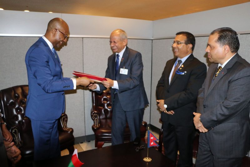 न्यूयोर्क, ११ असोज ,, नेपाल र माडागास्करले आज औपचारिक रुपमा कूटनीतिक सम्बन्ध स्थापना गरेका छन् । परराष्ट्रमन्त्री प्रदीपकुमार ज्ञवाली तथा माडागास्करका विदेशमन्त्री एलोइ अलफोन्स म्याक्सिम दोभोले यससम्बन्धी एक समझदारीपत्रमा हस्ताक्षर गर्नुभयो । यसरी नेपालसँग कूटनीतिक सम्बन्ध स्थापना गर्ने मुलुकको सङ्ख्या १६२ पुगेको संयुक्त राष्ट्र सङ्घका लागि नेपाली स्थायी नियोगका अधिकारीले...बाँकी अंश →