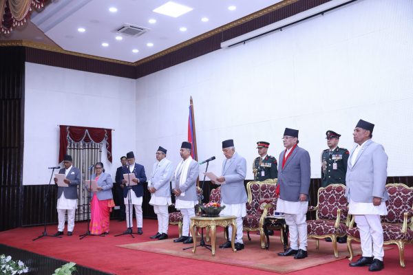 काठमाडौँ, २१ फागुनः प्रधानमन्त्री पुष्पकमल दाहाल ‘प्रचण्ड’ नेतृत्वको वर्तमान सरकार आज पुनःगठन हुने भएको छ । प्रधानमन्त्री दाहालको सिफारिसमा आजै नयाँ मन्त्रीहरुले सपथ लिने कार्यक्रम रहेको राष्ट्रपतिका प्रेस सल्लाहकार किरण पोखरेलले जानकारी दिनुभयो । उहाँका अनुसार नयाँ मन्त्रीहरुको सपथ आज साँझ ५ बजे राष्ट्रपति कार्यालय शीतल निवासमा हुने छ ।...बाँकी अंश →