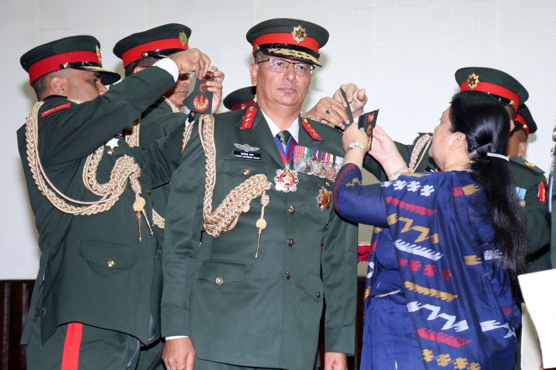 काठमाडौँ, २४ भदौ ,, राष्ट्रपति विद्यादेवी भण्डारीले कायममुकायम प्रधानसेनापति रथी पूर्णचन्द्र थापालाई आज महारथी दर्जाको दज्र्यानी चिन्ह प्रदान गर्नुभएको छ । राष्ट्रपति भण्डारी नेपाली सेनाको परमाधिपति हुनुहुन्छ । राष्ट्रपति भवन शितलनिवासमा आज आयोजित विशेष समारोहमा उहाँले रथी थापालाई महारथीको दज्र्यानी चिन्ह प्रदान गरी प्रधानसेनापतिमा नियुक्त गर्नुभएको हो । राष्ट्रपति भण्डारीले...बाँकी अंश →