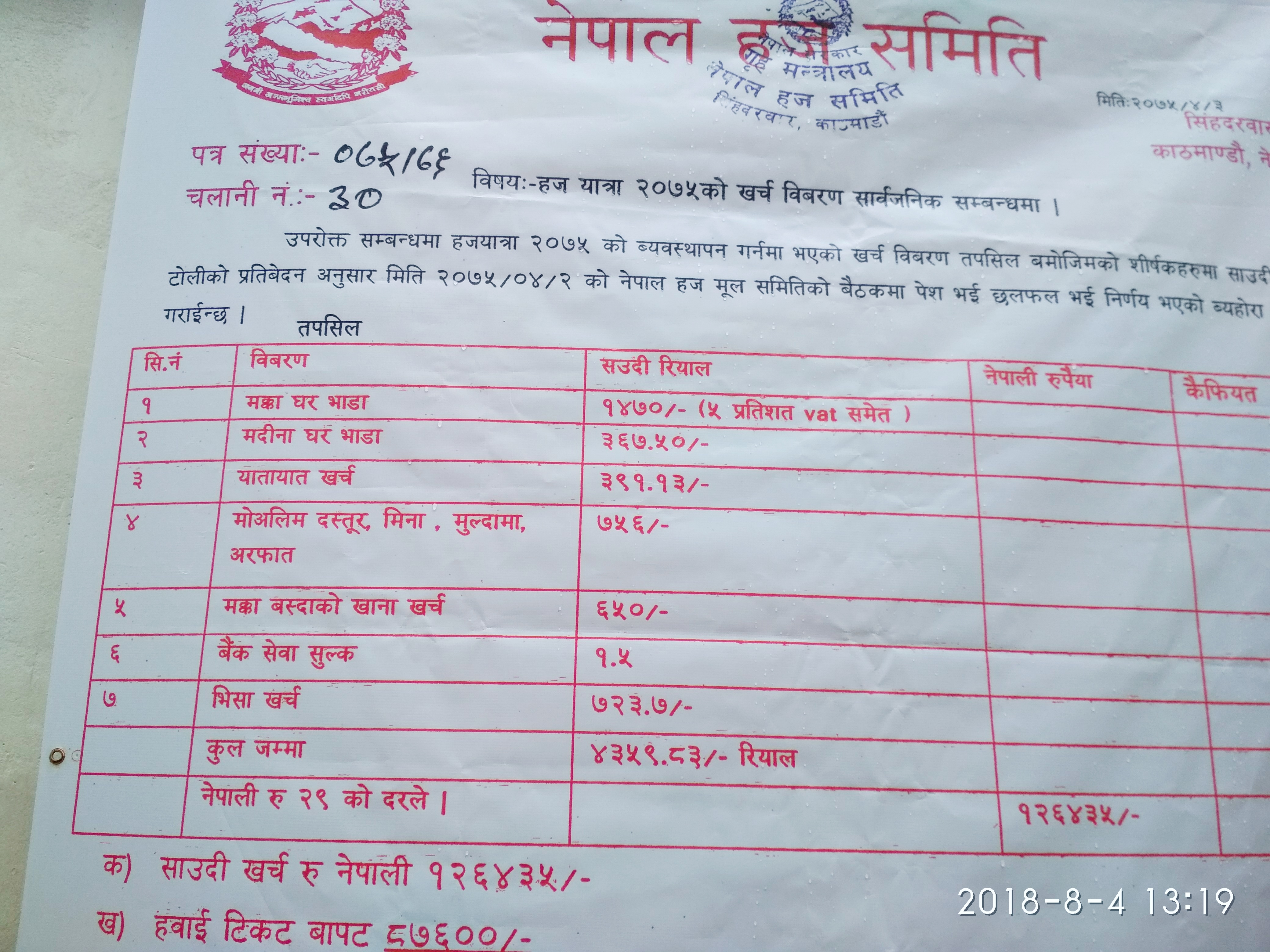 यस बर्ष २०७५ मा हजयात्रामा जाने हजयात्री हरू सँग नेपाल हज कमिटिले प्रति ब्यक्ति सात सय तेईस रियाल भिसा खर्च बापत भन्दै हिनामिना गरेको छ । सऊदी अम्बेस्सीका अनुसार हजयात्रिहरुको भिसा खर्चमा केहि रकम न लाग्ने जानकारी गराएको छ । यस बारे हज कमिटिका अध्यक्ष शोयब अहमद सँग आज साँझ...बाँकी अंश →