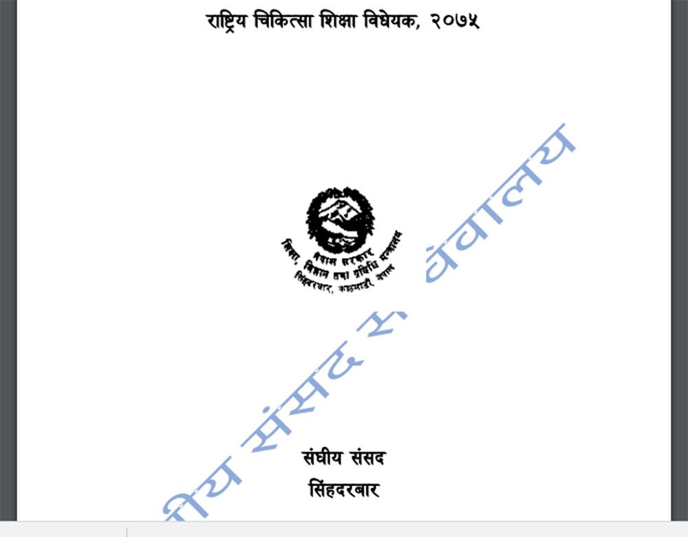 काठमाडौँ, १६ साउन (रासस) ः सरकार र प्रा डा केसीका बीचमा यही साउन १० गते भएको नौबुँदे सहमतिका बुँदानुसार नै ‘राष्ट्रिय चिकित्सा शिक्षा विधेयक, २०७५’ माथि एकल तथा संयुक्तगरी २२ वटा संशोधन दर्ता भएको छ । प्रतिनिधिसभाको यही साउन १३ गतेको बैठकमा सो विधेयकमाथि सामान्य छलफल सम्पन्न भएको थियो ।...बाँकी अंश →