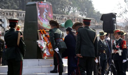 काठमाडौँ, २७ पुस,, राष्ट्रपति विद्यादेवी भण्डारीले सिंहदरबार पश्चिम मूलद्वारस्थित राष्ट्रनिर्माता पृथ्वीनारायण शाहप्रति श्रद्धाञ्जलि अर्पण गर्नुभएको छ । राष्ट्रपति भण्डारीले २९७औँ पृथ्वी जयन्तीका अवसरमा नेपाल प्रज्ञा–प्रतिष्ठानद्वारा आज आयोजित समारोहमा सरिक भई उहाँको शालिकमा पुष्पहार अर्पण गरी नेपालको एकीकरणमा उहाँको योगदानको स्मरण गर्नुभयो । सो अवसरमा नेपाली सेनाको बैण्डसहितको टुकडीले सम्मान अर्पण...बाँकी अंश →