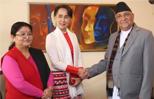 काठमाडौँ, १४ मङ्सिर,,   प्रधानमन्त्री केपी शर्मा ओलीसँग नेपालको औपचारिक भ्रमणमा रहनुभएका म्यान्माका स्टेट काउन्सिलर आङ सान सु कीले आज यहाँ भेटवार्ता गर्नुभएको छ । सो अवसरमा उहाँहरूका बीचमा द्विपक्षीय हित र आपसी सम्बन्धका विविध विषयमा कुराकानी भएको जनाइएको छ । भेटमा परराष्ट्रमन्त्री प्रदीप ज्ञवाली, प्रधानमन्त्री ओलीका मुख्य राजनीतिक सल्लाहकार विष्णु...बाँकी अंश →