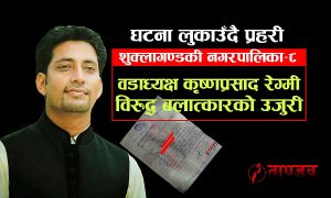 दमौली, ७ मङ्सिर,, तनहुँको शुक्लागण्डकी नगरपालिका–८ का वडाध्यक्ष कृष्णप्रसाद रेग्मीविरुद्ध इलाका प्रहरी कार्यालय बेलचौतारामा बलात्कारको जाहेरी दर्ता भएको छ । सोही वडाकी एक महिलाले रेग्मीले आफूलाई बलात्कार गरेको भन्दै बिहीबार जाहेरी दर्ता गराउनुभएको हो । उहाँको बिहीबार नै स्वास्थ्य परीक्षण गरिएको छ । इलाका प्रहरी कार्यालय बेलचौताराका प्रहरी निरीक्षक श्रवणकुमार...बाँकी अंश →