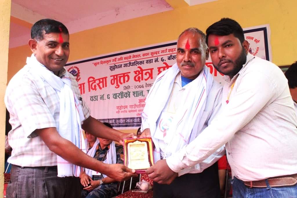 कपिलवस्तु,२० बैशाख कपिलवस्तुको शुद्धोधन गाउपालिका वडा नम्बर ६ बासखोरलाई आज खुल्ला दिसा मुक्त वडा घोषणा गरिएको छ । शुद्धोधन गाउपालिका वडा नम्बर ६ अन्र्तगत १८ वटा गाउ लाई समेटिएको वडाका कुल १ हजार ४ सय ३५ घरधुरीमा निर्माण भइसकेको हुदा वडालाई खुल्ला दिसा मुक्त घोषणा गरिएको हो । वडाको उक्त...बाँकी अंश →