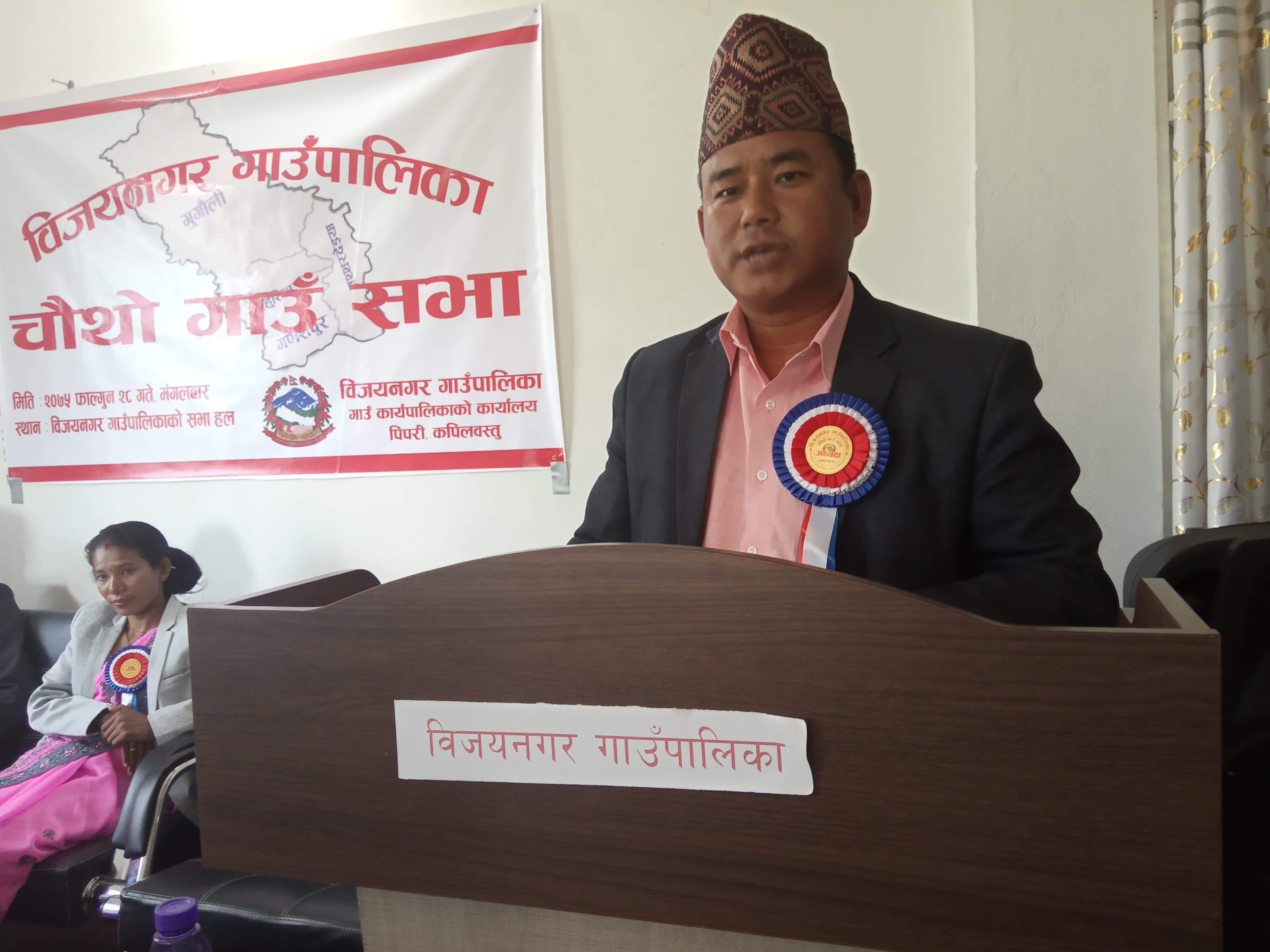कपिलवस्तु / संवाददाता फागुन २८ कपिलवस्तुको विजयनगर गाउँपालिकाको आज चौँथो गाउँ सभा सम्पन्न भएको छ । गाउँपालिकाले विभिन्न योजना तथा कार्यक्रमहरु गाउँसभामा बाट पारित गरेको छ । जस अन्तरर्गत ,कर सम्बन्धी र न्यायीक सम्बन्धी विविध योजनाहरु ल्याएको हो । गाउँ सभाले साक्षरता अभियान,जनता उद्घार उपचार कोष,महिला समुह सहकारी चालु कोष...बाँकी अंश →