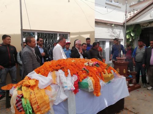 रोल्पा, ८ पुस,, प्रतिनिधिसभाका सभामुख कृष्णबहादुर महराले गत शुक्रबार सल्यानमा भएको बस दुर्घटनामा परी दिवङ्गत भएकाप्रति श्रद्धाञ्जलि व्यक्त गर्नुभएको छ । रोल्पा प्राविधिक शिक्षालयमा आज आयोजित शोकसभामा सभामुख महराले मृतकहरुप्रति श्रद्धाञ्जलि व्यक्त गर्नुभएको थियो । घाइतेहरुको शीघ्र स्वास्थ्यलाभको कामना गर्दै उनीहरुको उपचारमा यथोचित व्यवस्था गर्नुपर्ने धारणा राख्नुभएको थियो । सभामा...बाँकी अंश →