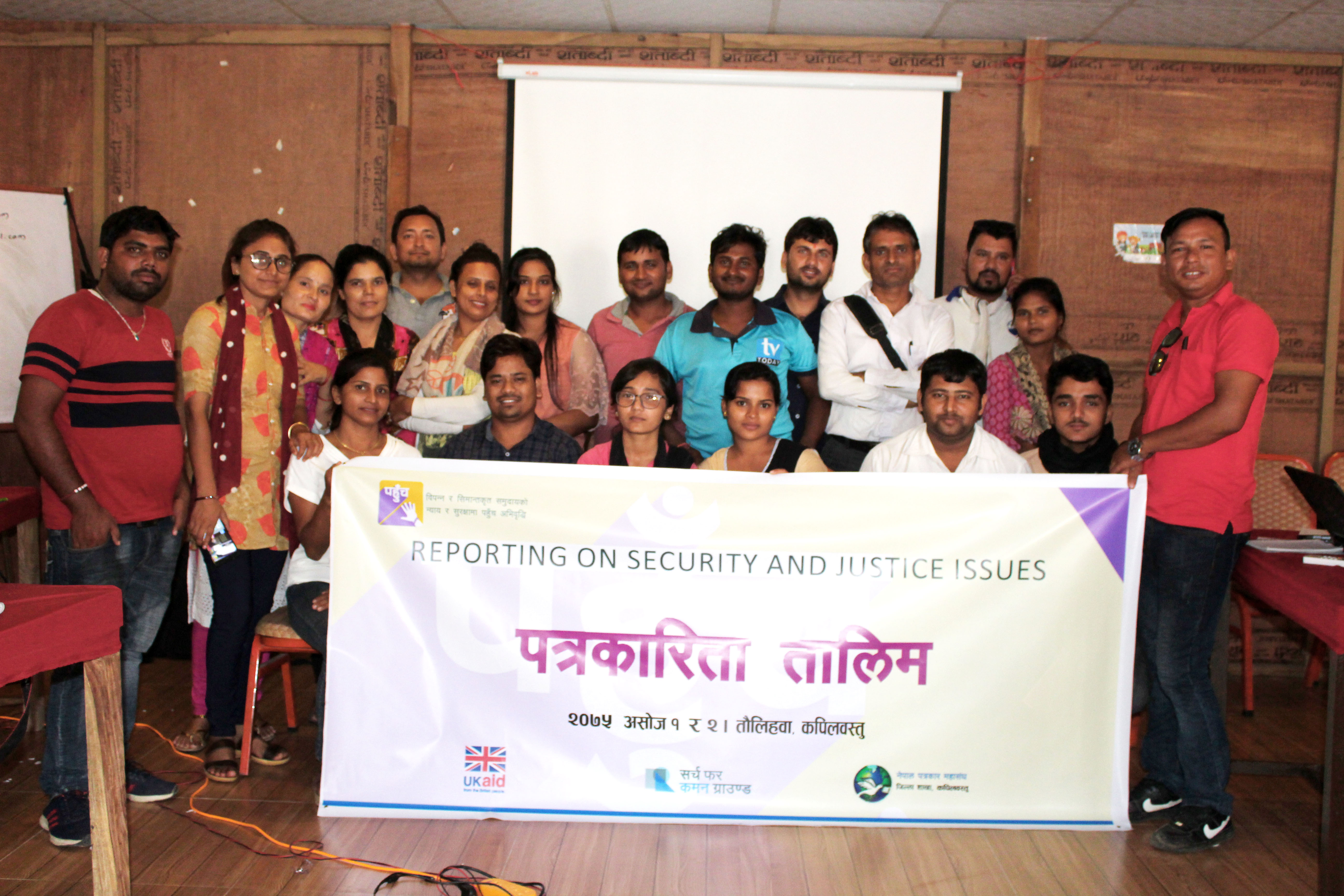 कपिलबस्तु असोज ३ सुरक्षा र न्यायपहुँच अभिवृद्धि विषयक २ दिने पत्रकारिता तालिम सम्पन्न भएको छ । विपन्न र सिमान्तकृत समुदायको न्याय सुरक्षामा पहुँच अभिवृद्धी गर्ने उदेश्यले नेपाल पत्रकार महासघं कपिलबस्तु शाखाको आयोजना तथा सर्च फर कमन ग्राउन्डको सहयोगमा कपिलबस्तुको सदरमुकाम तौलिहवामा सोमवार शुरु भएको तालिम मंगलवार सम्पन्न भएको हो ।...बाँकी अंश →