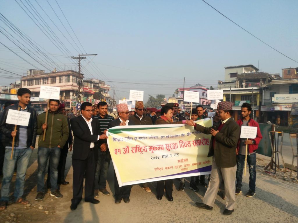 भद्रपुर, २ माघ ,, एक्काइसौँँ राष्ट्रिय भूकम्प सुरक्षा दिवसको अवसरमा आज बिहान झापाको चन्द्रगढीमा प्रभातफेरि निकालिएको छ । राष्ट्रिय भूकम्प सुरक्षा दिवस समारोह समिति झापाको आयोजनामा चन्द्रगढीको लेखनाथ चोकबाट निकालिएको प्रभातफेरि जिल्ला समन्वय समिति झापाको हलमा पुगेर अन्तरक्रिया कार्यक्रममा परिणत भएको थियो । कार्यालयका प्रमुख, कर्मचारी, भद्रपुर नगरपालिका उपप्रमुखलगायत सहभागी...बाँकी अंश →