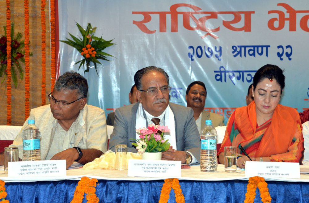 पर्सा, २२ साउन ,नेपाल कम्युनिष्ट पार्टी (नेकपा)का अध्यक्ष पुष्पकमल दाहाल ‘प्रचण्ड’ले मुलुक भित्र लगानीका लागि सुरक्षित वातावरण छ भन्ने सन्देश दिनुपर्ने बताउनुभएको छ । जिल्ला तथा नगरस्तरीय उद्योग वाणिज्य संघको राष्ट्रिय भेलालाई आज उहाँ सम्बोधन गर्दै अध्यक्ष प्रचण्डले लगानी कर्ताको पूँजीको सुरक्षा, उद्योगको सुरक्षा, नाफा कमाउने स्वतन्त्रतालाई सुरक्षित गर्नुपर्ने बताउनुभयो...बाँकी अंश →
