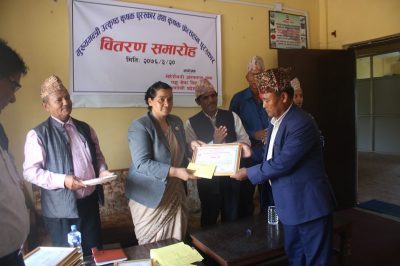 काठमाडौँ, ३ कात्तिक दलित अधिकारकर्मी डा विष्णुमाया परियारले आफ्ना पिता रुपबहादुर परियारको नाममा पत्रकारिता पुरस्कार स्थापनाको घोषणा गर्नुभएको छ । राष्ट्रिय दलित पत्रकार सङ्घ नेपालद्वारा शनिबार आयोजित गैरआवासीय नेपाली सङ्घ (एनआरएनए) का दलित समुदायका प्रतिनिधिसँगको छलफल कार्यक्रममा डा परियारले रु २० हजार राशिको पुरस्कार घोषणा गर्नुभएको हो । सो अवसरमा...बाँकी अंश →