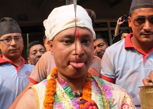 भक्तपुर, १० असोज ،، मध्यपुर थिमी नगरपालिका–५ चोडेका ४० वर्षीय बालकराम श्रेष्ठले जिब्रो छेड्नुभएको छ । उहाँले मङ्गलबार राति ८ बजे मध्यपुरथिमी नगरपालिका दिगु भैरव मन्दिरको मण्डपमा जिब्रो छेड्नुभएको हो । विसं २०६३ देखि रोकिएर गत वर्षदेखि शुरु भएकोे थिमीको जिब्रो छेड्ने जात्रालाई निरन्तरता दिन यस वर्ष उहाँले हजाराँै मानिसको...बाँकी अंश →